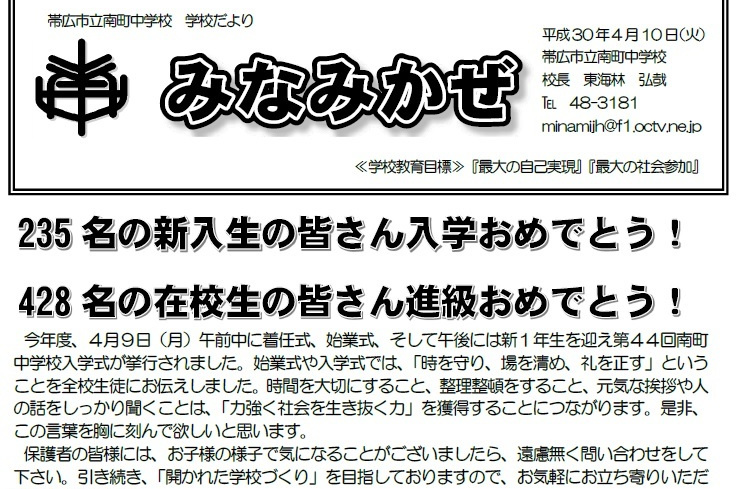 学校だより「みなみかぜ」