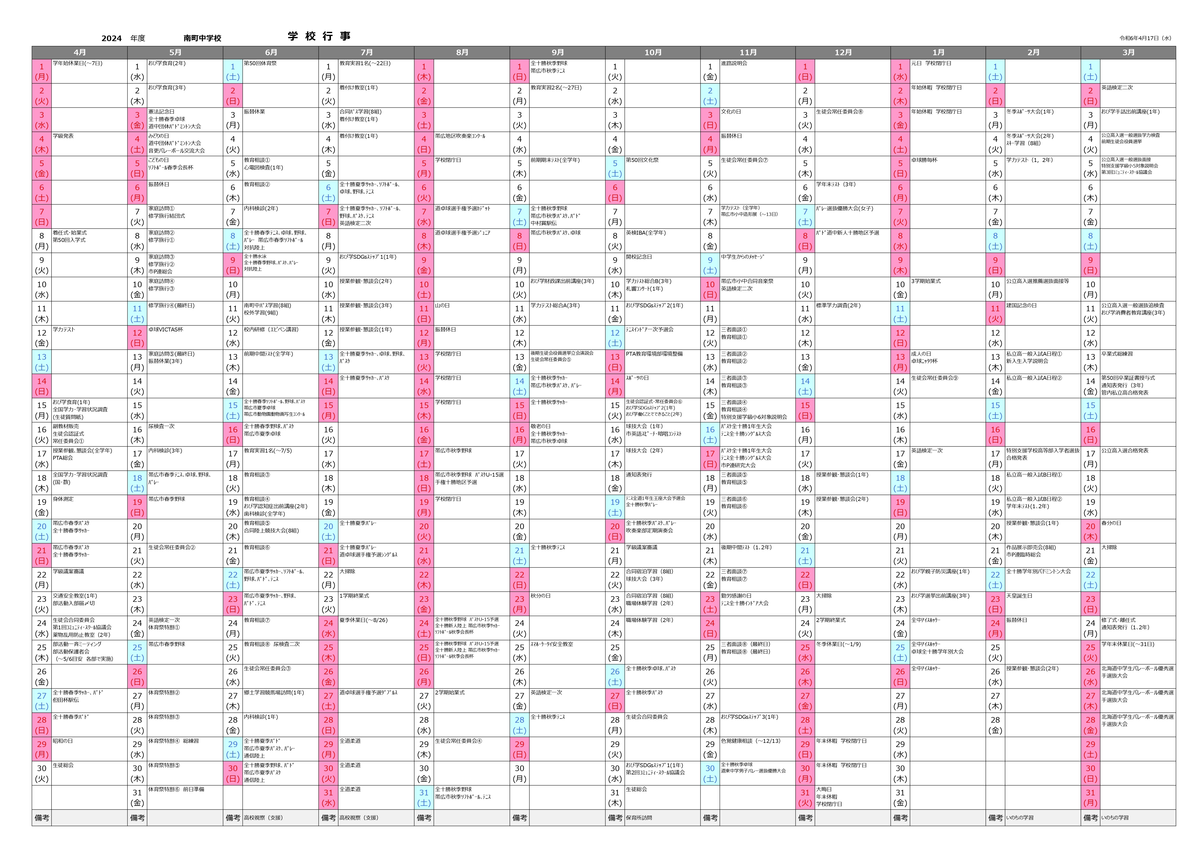 年間予定・学校便り・更新・各取組